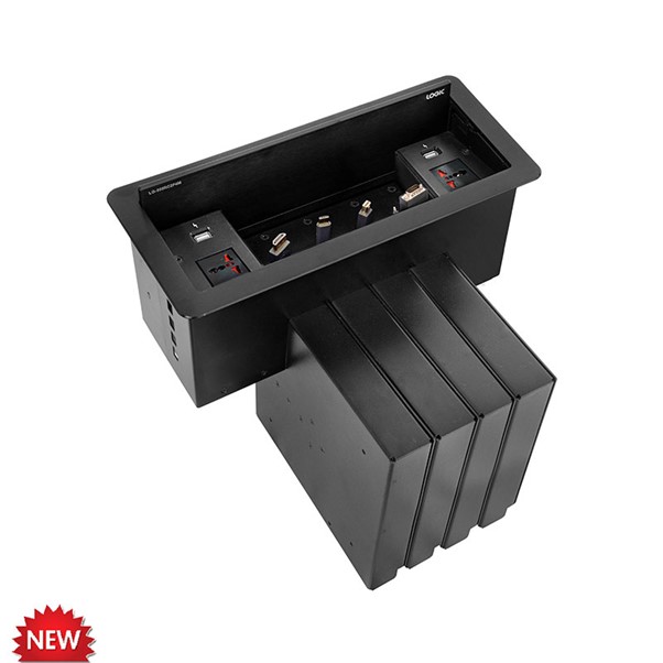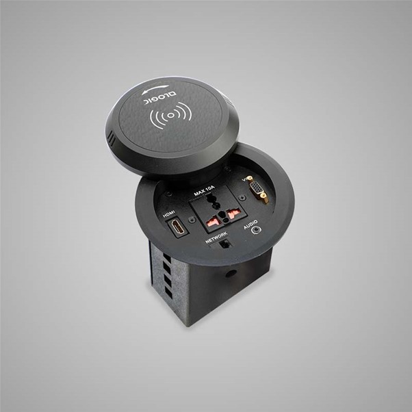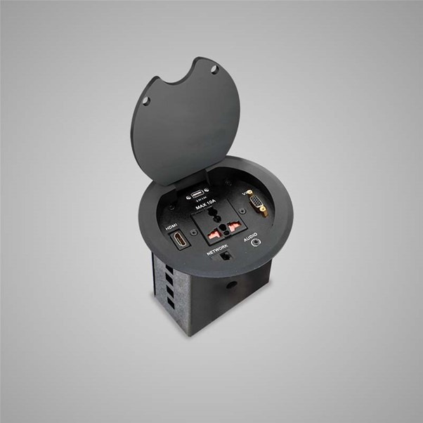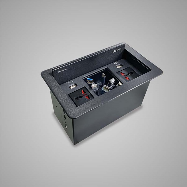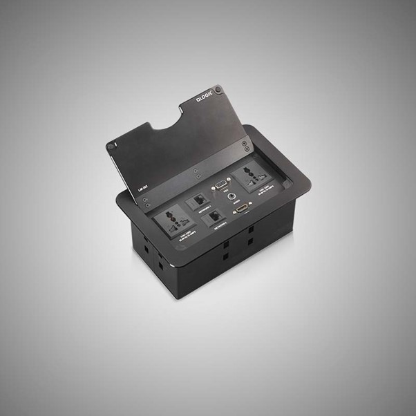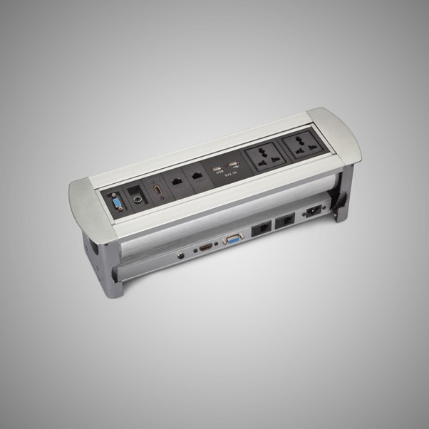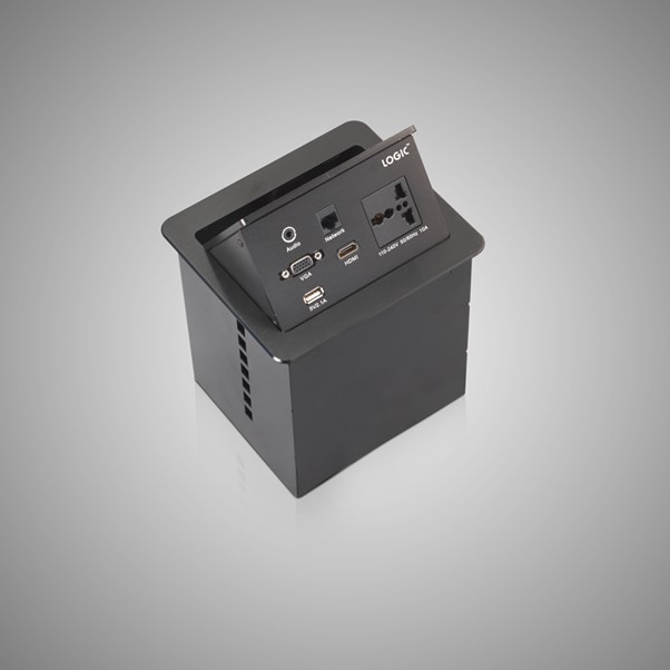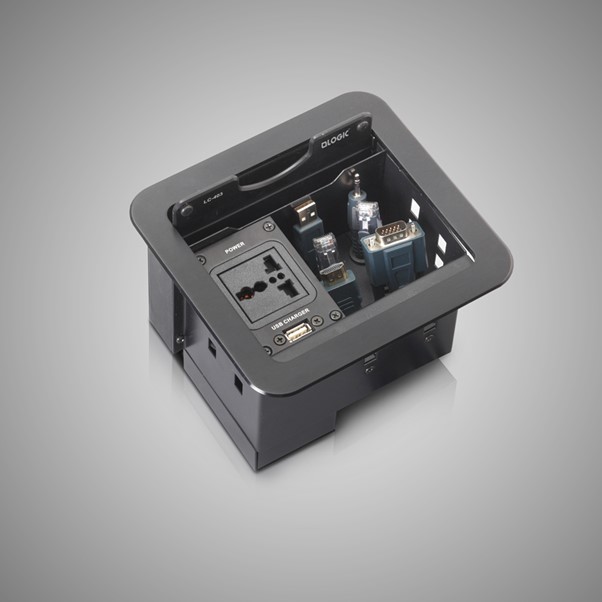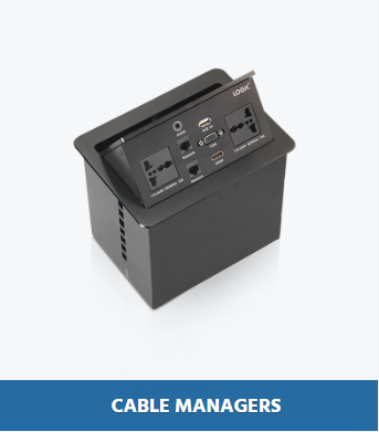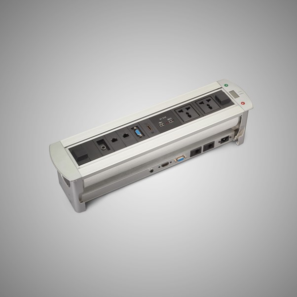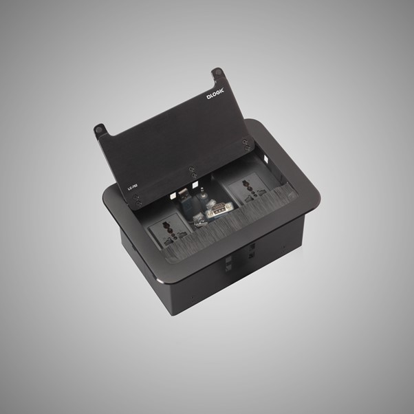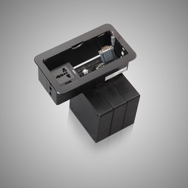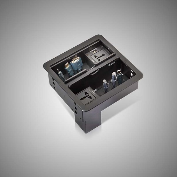 A compact cable manager fixed on a table makes your communication from your laptop or desktop to display or projector smooth and hassle-free. It connects, collaborates and assists to present the content in the display in any business environment.